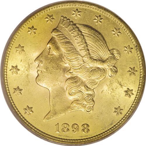 1898-S $20 MS63 PCGS. A satiny and moderately abraded
