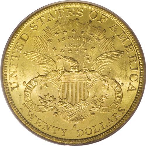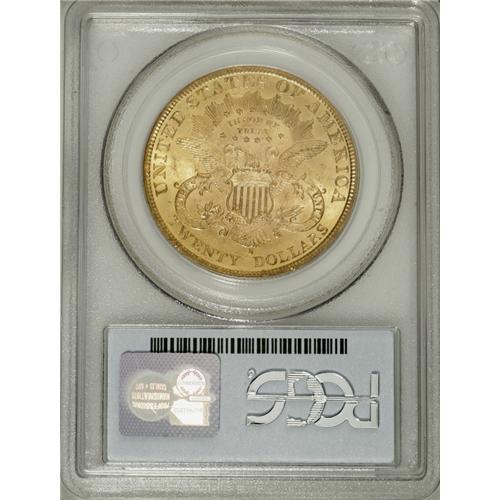 <B>1898-S $20 MS63 PCGS.</B></I> A satiny and moderately abraded example with pink-gold centers and green-gold borders. The 189 is lightly repunched south, with the widest spread beneath the base of the 1.<BR><BR><b>Shipping:</b> Coins & Currency (<a target="_blank" href="http://www.heritageauctions.com/common/shipping.php">view shipping information</a>)