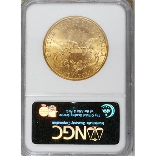 <B>1898-S $20 MS64 NGC.</B></I> Almost a Prooflike piece, this near-Gem displays amazingly flashy fields and attractive coloration. Well struck with a few grade-restricting marks on each side. <BR><BR><B>Coin Engraver:</B> James B. Longacre<BR><BR><b>Shipping:</b> Coins & Currency (<a target="_blank" href="http://www.heritageauctions.com/common/shipping.php">view shipping information</a>)