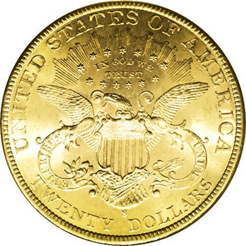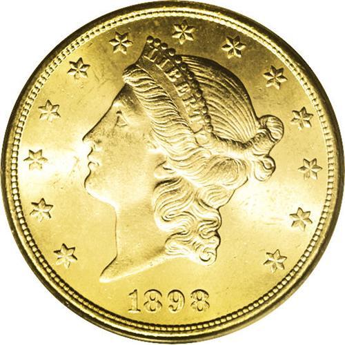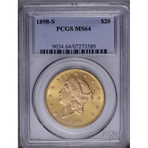 1898-S $20 MS64 PCGS. A shimmering, near-Gem specimen 1898-S[$20] MS64 PCGS.