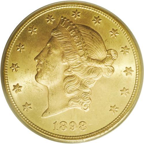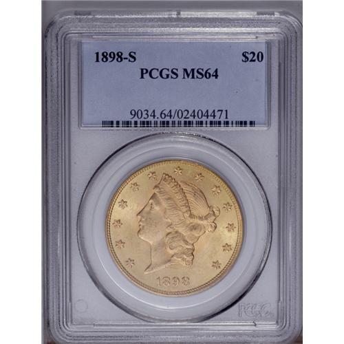 <B>1898-S $20 MS64 PCGS.</B></I> Abundant satiny luster emanates from both sides, with typically bold striking details and few appreciable surface marks. Despite the high production standards employed by the San Francisco Mint this year, Gem examples are surprisingly scarce.