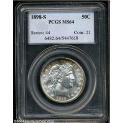 <table><tr><td><TABLE cellSpacing=0 cellPadding=0 width="100%" bgColor=#000000 border=0><TBODY> <TR><TD width="100%"><TABLE cellSpacing=1 cellPadding=3 width="100%" border=0><TBODY><TR><TD width="100%" bgColor=#79735c><FONT face=arial color=#ffffff size=3><B>Description</B> </FONT></TD></TR><TR><TD width="100%" bgColor=#ffffff><FONT face=arial size=2><B>1898-S 50C MS64 PCGS.</B></I> The 1898-S is the scarcest of the three S-mint Barber half dollar deliveries (1898-S, 1899-S, and 1900-S) that were sent to the Philippines in quantity at the time of issue. Mint State examples are very elusive. The currently offered piece displays bright, frosty, highly lustrous surfaces, well struck on the obverse, but slightly weak near the reverse center. Three spidery die cracks (as struck) are seen near the upper and lower rims. The brilliant centers are accented by lovely golden-russet rim toning on both sides, and there are a few faint pinscratches on the obverse, while the reverse only shows a small number of minor blemishes on the eagle. Population: 9 in 64, 9 finer (8/03).<BR><I>From the Andy Geosits Collection of Barber Halves.</B></I> </FONT></TD></TR></TBODY></TABLE></TD></TR></TBODY></TABLE><BR><A name=PricesRealized></A><TABLE cellSpacing=0 cellPadding=0 width="100%" bgColor=#000000 border=0><TBODY><TR><TD width="100%"><TABLE cellSpacing=1 cellPadding=3 width="100%" border=0><TBODY><TR><TD width="100%" bgColor=#79735c><A name=PR><FONT face=arial color=#ffffff size=3><B>Previous Prices from Heritage Auctions</B> </FONT></A></TD></TR><TR><TD bgColor=#f6f6ed><TABLE cellSpacing=0 cellPadding=0 width="100%" border=1><TBODY><TR><TD align=middle width="33%"><B>Date</B></TD><TD align=middle width="33%"><B>Service</B></TD><TD align=middle width="33%"><B>Price</B></TD></TR><TR bgColor=whitesmoke><TD width="33%"><B>08/02/1997</B></TD><TD width="33%">PCGS</TD><TD width="33%">$4,600.00</TD></TR><TR bgColor=whitesmoke><TD width="33%"><B>03/01/1998</B></TD><TD width="33%">PCGS</TD><TD width="33%">$3,960.00</TD></TR></TBODY></TABLE></TD></TR><TR><TD bgColor=#ffffff><FONT face=arial size=1 ?>PLEASE NOTE: All prices realized reflect the final hammer price PLUS the buyer's premium in auctions that charge a buyer's premium. Each item has a notation at the top of the listing indicating whether that lot included a buyer's premium. Example: A item that sells with a final hammer price of $100 and a 20% buyer's premium will display with a price realized of $120. All information listed is intended to be as accurate as possible, but errors are possible. Please use this guide carefully and inform us of any inaccuracies. </FONT></TD></TR></TBODY></TABLE></TD></TR></TBODY></TABLE><BR><TABLE cellSpacing=0 cellPadding=0 width="100%" bgColor=#000000 border=0><TBODY><TR><TD width="100%"><TABLE cellSpacing=1 cellPadding=3 width="100%" border=0><TBODY><TR><TD width="100%" bgColor=#79735c colSpan=6><FONT face=arial color=#ffffff size=3><B>Price Guide*</B> </FONT></TD></TR><TR bgColor=#f6f6ed><TD align=middle><B>Grade</B> </TD><TD align=middle><B>Coin World<BR>(Trends)</B> </TD><TD align=middle><B>Numismedia<BR>Retail</B> </TD><TD align=middle><B>Numismedia<BR>Wholesale</B> </TD><TD align=middle><B>Coin<BR>Universe</B> </TD><TD align=middle><B>Heritage<BR>Value Index</B> </TD></TR><TR bgColor=#ffffff><TD align=middle>63</TD><TD align=right>$2,300.00</TD><TD align=right>---</TD><TD align=right>$1,875.00</TD><TD align=right>$2,275.00</TD><TD align=right>$1,622.50</TD></TR><TR style="FONT-WEIGHT: bold" bgColor=#cccfdd><TD align=middle>64</TD><TD align=right>$5,000.00</TD><TD align=right>---</TD><TD align=right>$3,975.00</TD><TD align=right>$4,300.00</TD><TD align=right>$3,250.00</TD></TR><TR bgColor=#ffffff><TD align=middle>65</TD><TD align=right>$8,000.00</TD><TD align=right>---</TD><TD align=right>$6,850.00</TD><TD align=right>$9,650.00</TD><TD align=right>$6,938.75</TD></TR><TR bgColor=#ffffff><TD colSpan=6><FONT size=1>*All information listed is intended to be as accurate as possible, but errors are possible. No item may be returned or refused based on this information which is provided as a service to our customers. You should contact each pricing source directly to determine the accuracy of this information. </FONT></TD></TR></TBODY></TABLE></TD></TR></TBODY></TABLE><BR><TABLE cellSpacing=0 cellPadding=0 width="100%" bgColor=#000000 border=0><TBODY><TR><TD width="100%"><TABLE cellSpacing=1 cellPadding=3 width="100%" border=0><TBODY><TR><TD width="100%" bgColor=#79735c><FONT face=arial color=#ffffff size=3><B>Population Guide</B> </FONT></TD></TR><TR bgColor=#ffffff><TD align=middle><!-- Begin Output of Population Grid--><TABLE cellSpacing=0 cellPadding=0 width="100%" border=0><TBODY><TR><TD vAlign=center><TABLE cellSpacing=0 width="100%" border=1 cellsadding="3"><TBODY><TR><TD vAlign=center><TABLE cellSpacing=0 cellPadding=3 width="100%" border=1><TBODY><TR><TD vAlign=center align=middle bgColor=#f0f1e8 colSpan=2 <CENTER><FONT face=Arial size=2><B>PCGS Pop </B></FONT><CENTER></CENTER></TD><TD vAlign=center align=middle bgColor=#f0f1e8 colSpan=2><CENTER><FONT face=Arial size=2><B>NGC Pop</B></CENTER></FONT></TD></TR><TR><TD vAlign=center><FONT face=Arial size=2>(64)</FONT> </TD><TD vAlign=center align=right><FONT face=Arial size=2>10</FONT> </TD><TD vAlign=center><FONT face=Arial size=2>(64)</FONT> </TD><TD vAlign=center align=right><FONT face=Arial size=2>10</FONT> </TD></TR><TR><TD vAlign=center><FONT face=Arial size=2>(>64)</FONT> </TD><TD vAlign=center align=right><FONT face=Arial size=2>9</FONT> </TD><TD vAlign=center><FONT face=Arial size=2>(>64)</FONT> </TD><TD vAlign=center align=right><FONT face=Arial size=2>9</FONT> </TD></TR></TBODY></TABLE></TD></TR></TBODY></TABLE></TD></TR></TBODY></TABLE><!-- End Output of Population Grid--></TD></TR></TBODY></TABLE></TD></TR></TBODY></TABLE><BR><TABLE cellSpacing=0 cellPadding=0 width="100%" bgColor=#000000 border=0><TBODY><TR> Important notice: Heritage usually auctions material
