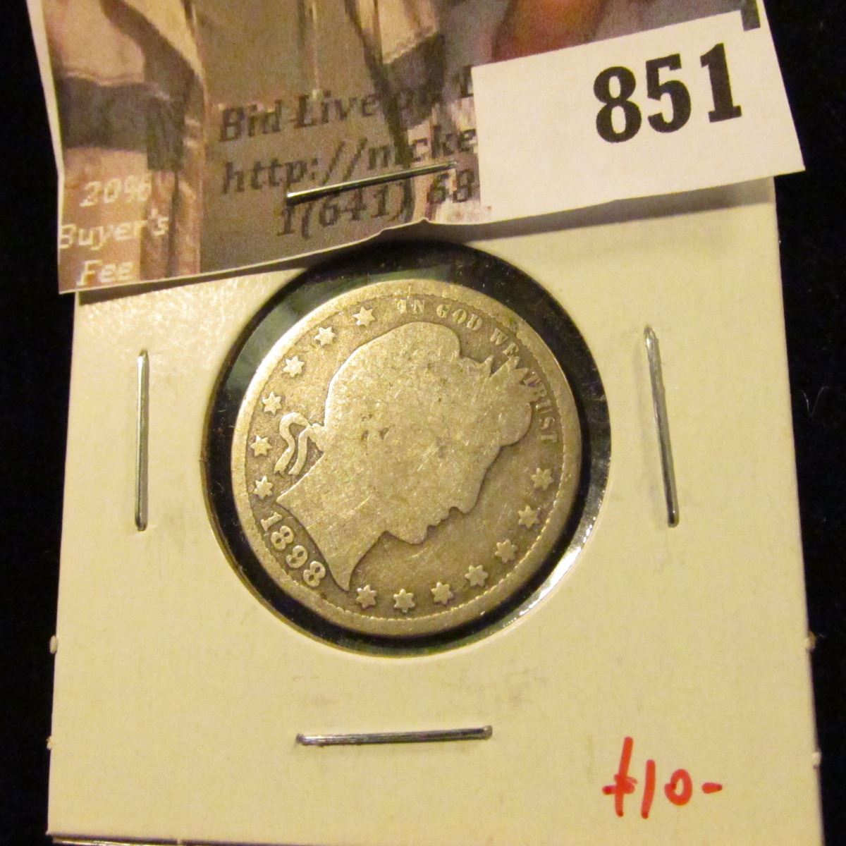 1898-S Barber Quarter, G obverse, AG reverse, value $10