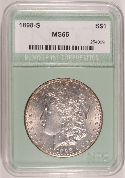 1898-S MORGAN DOLLAR NTC MS65 WHITE, VERY NICE, LOOKS MS64+