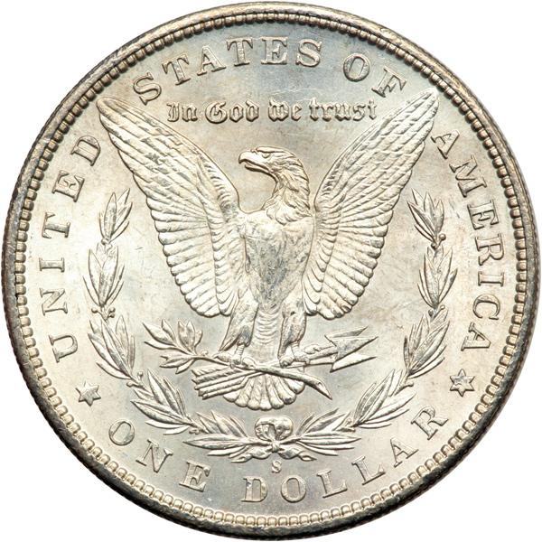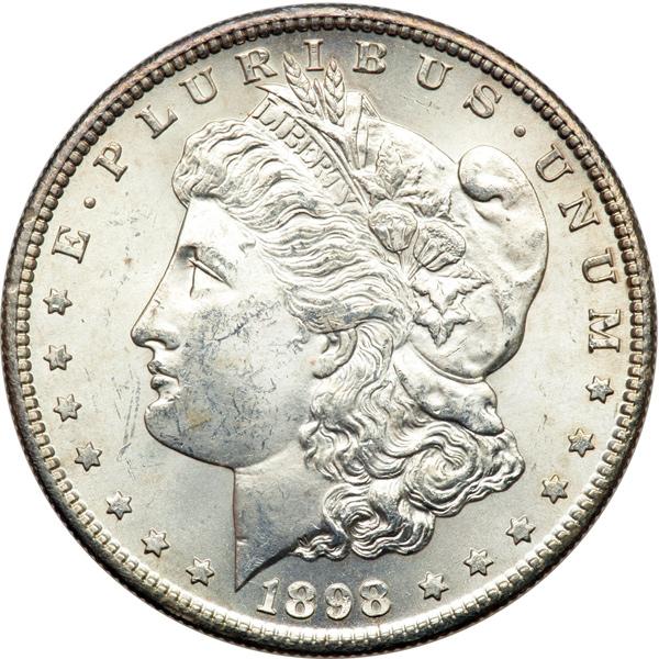 1898-S Morgan Dollar. NGC graded MS-63. Light hint of gold tone. Well struck; lustrous (PCGS # 7256) .