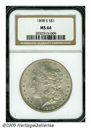 <B>1898-S<S$1> MS64 NGC.</B></I> Well struck with radiant luster and very lightly marked surfaces that come close to being brilliant, save for blushes of pale apricot-gray color over each side.<BR><I>From The Empire State Collection.</B></I>