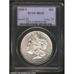 1898-S S$1 MS65 PCGS. A lustrous Gem with exquisite surfaces. The portrait has a few faint roller ma