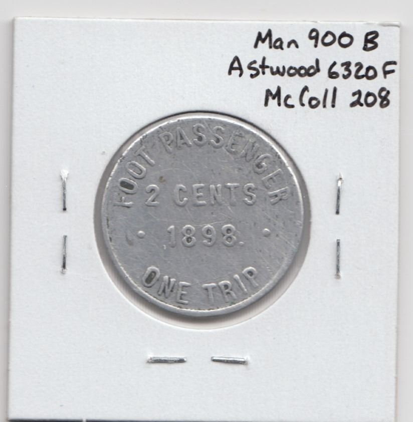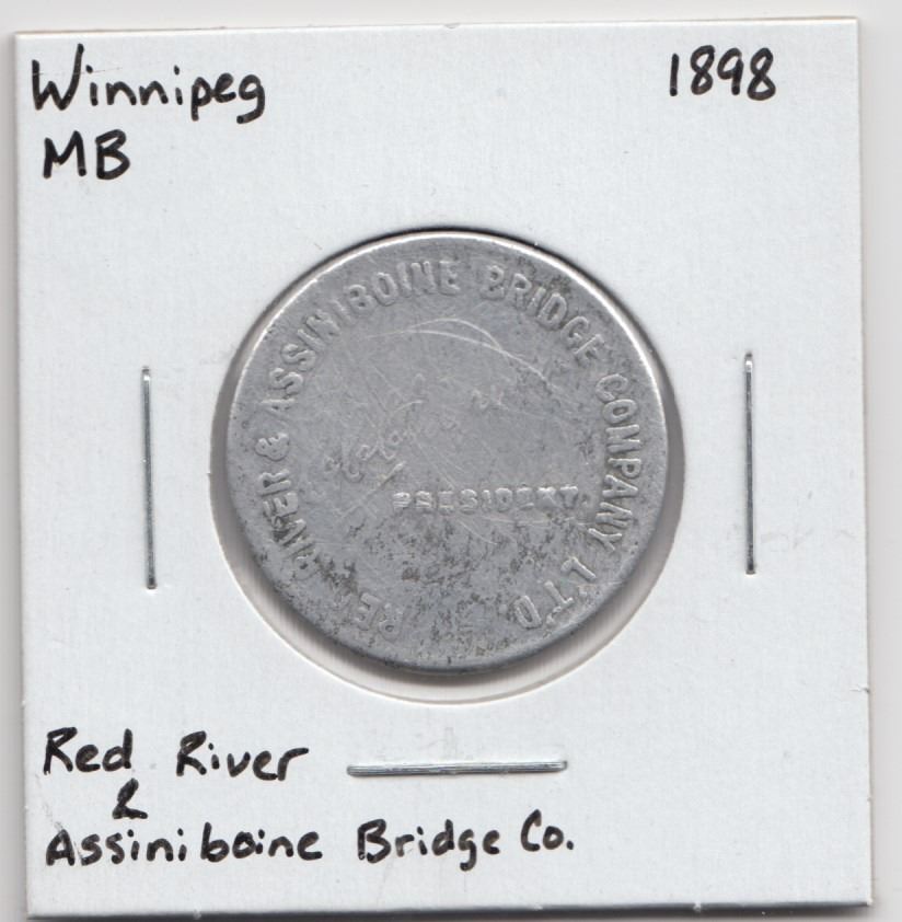 Red River & Assiniboine Bridge Co. Good for 2 cents. MAN-900B. Atwood 6320F. McColl 208.
