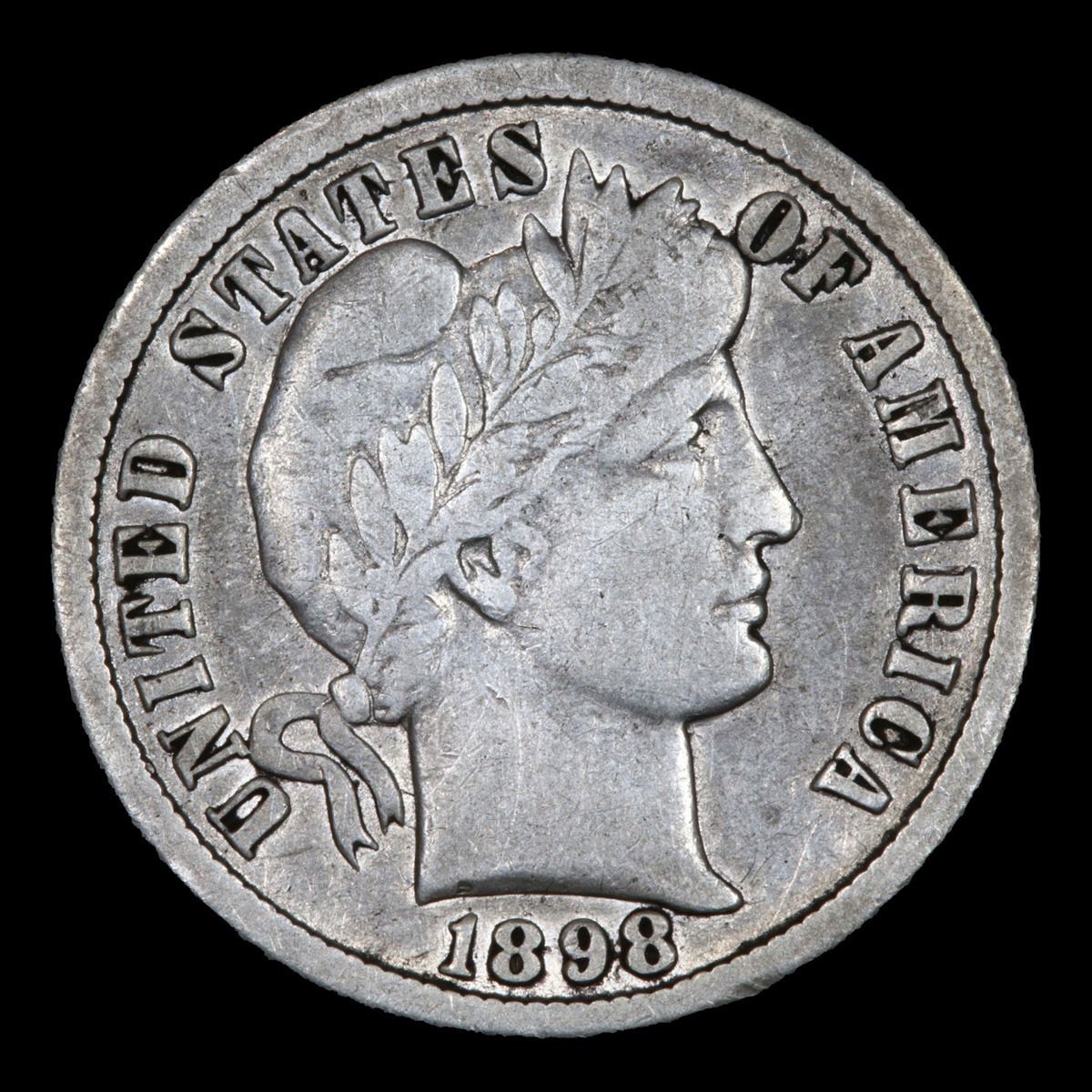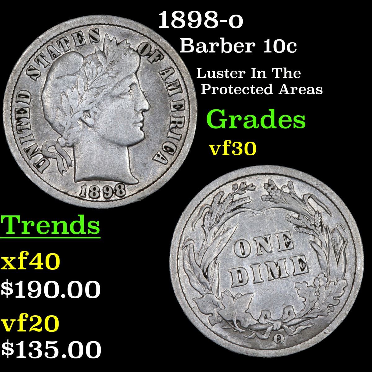 1898-o Luster In The Protected Areas . Barber Dime 10c Grades vf++. SEMI KEY DATE. A scarce coin in any grade.