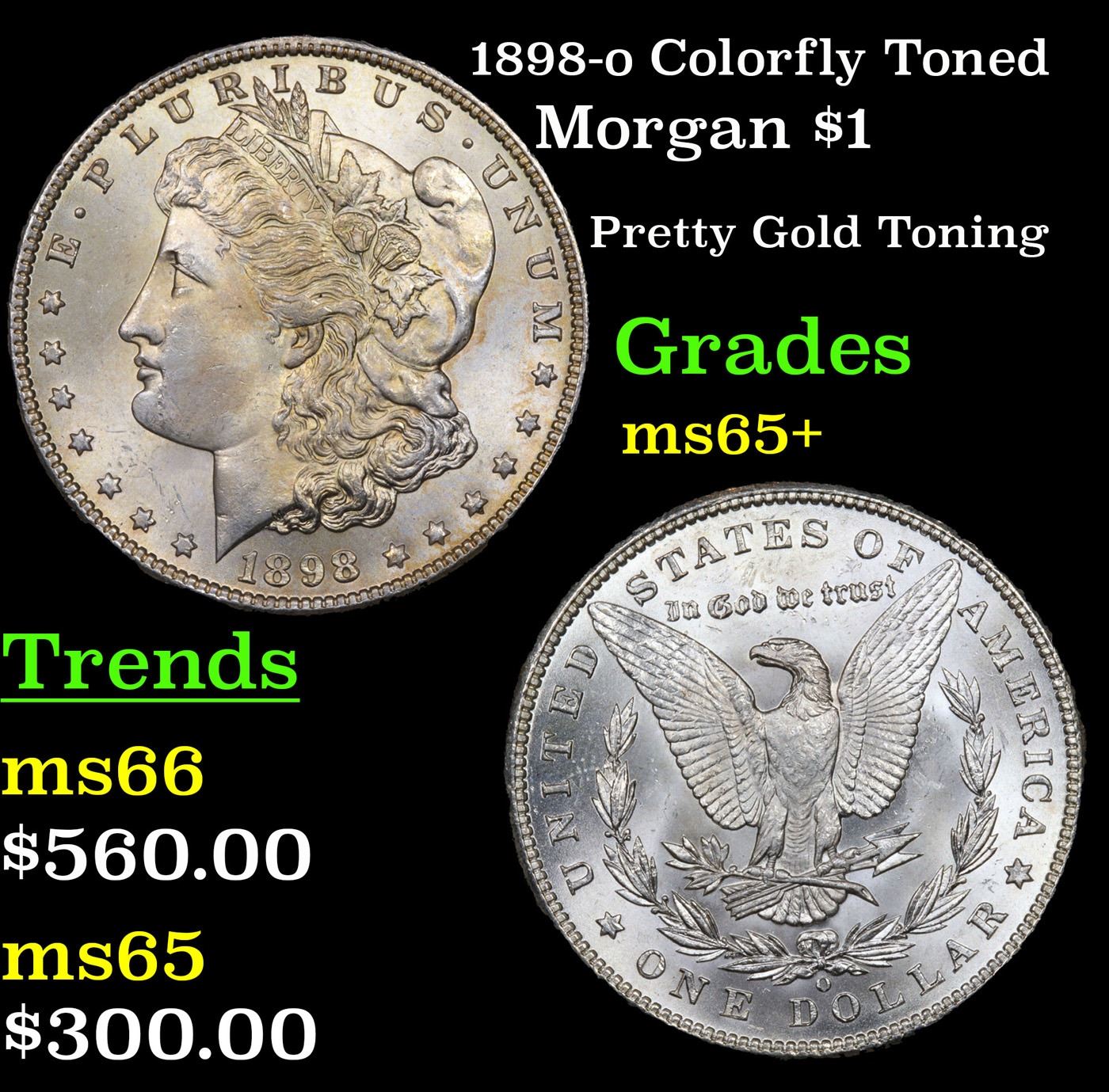 1898-o Colorfully Toned Morgan Dollar $1 Grades GEM+ Unc.