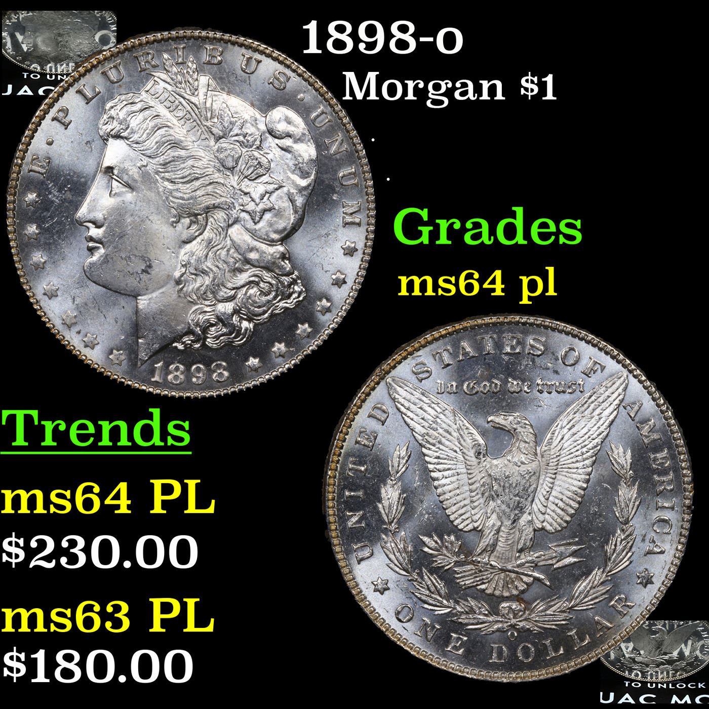 1898-o Morgan Dollar $1 Grades Choice Unc PL.
