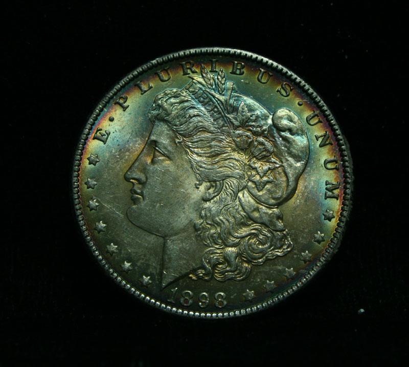 Original beautiful Rainbow Toned Obverse. The Obverse has Great colors Yellows, purples and some red. The color actually appears as a rainbow Arc. A coin with Vastly Superior eye appeal. The Wholesale Greysheet Value of a regular ms64 is $115, but the value here is in the rainbow. Estimated Value $200
