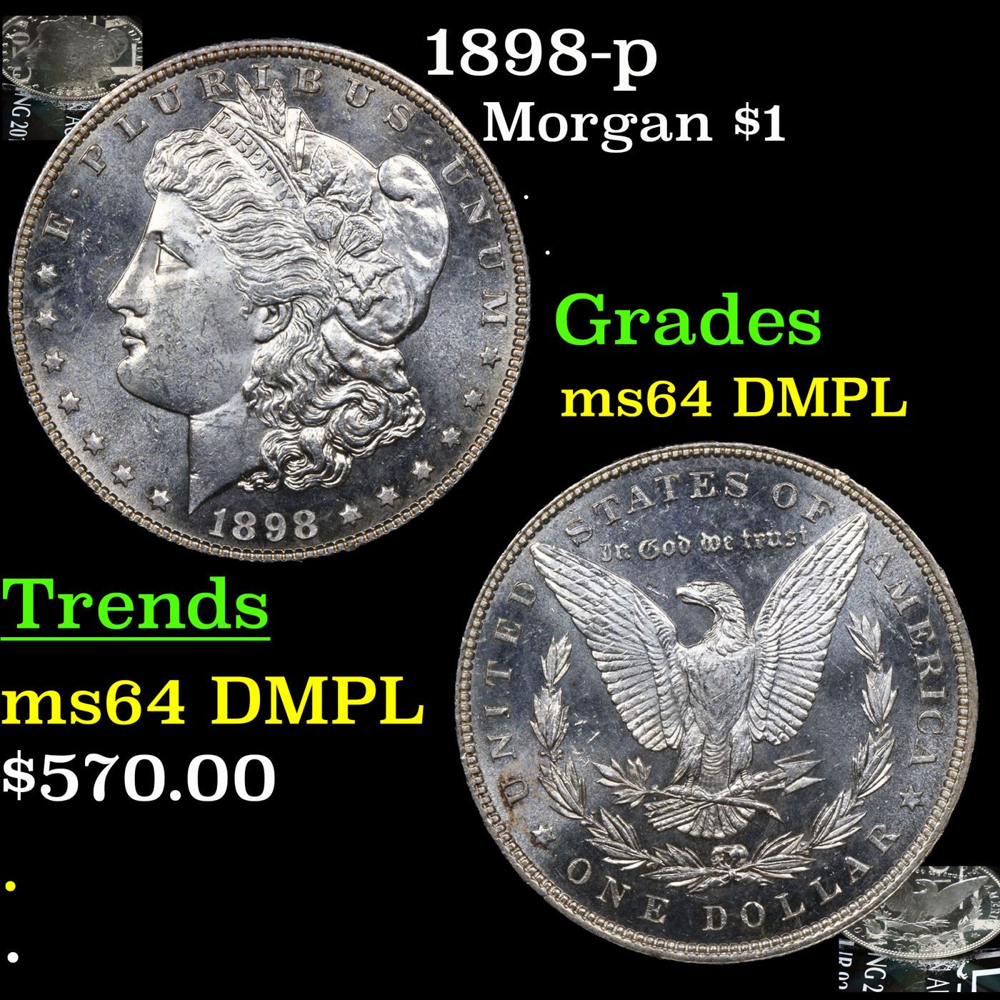 1898-p Morgan Dollar $1 Grades Choice Unc DMPL.