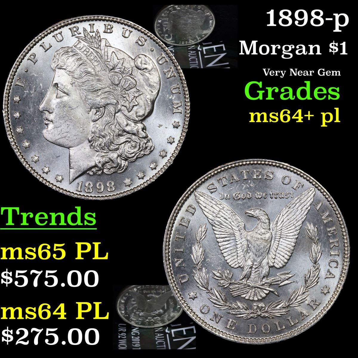 1898-p . Very Near Gem Morgan Dollar $1 Grades Choice Unc+ PL.