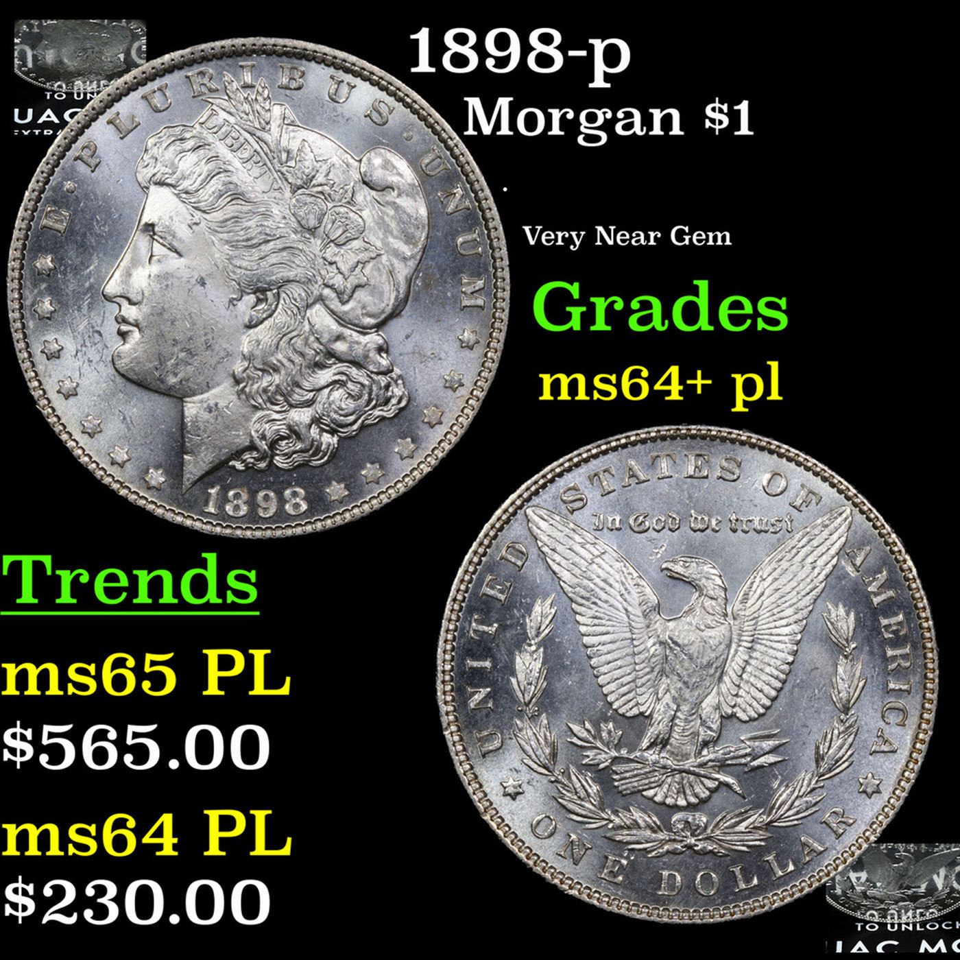 1898-p Morgan Dollar $1 Grades Choice Unc+ PL.