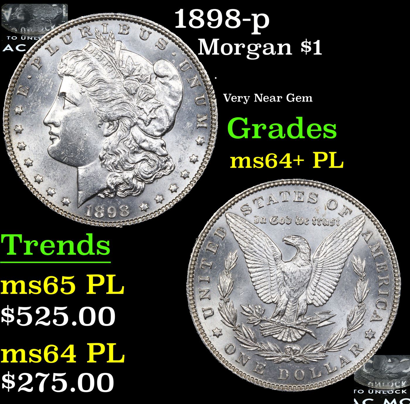 1898-p Morgan Dollar $1 Grades Choice Unc+ PL.