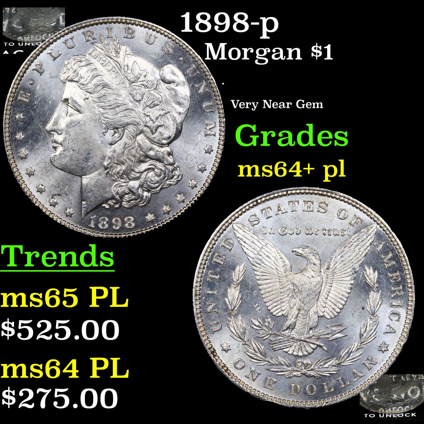 1898-p Morgan Dollar $1 Grades Choice Unc+ PL.