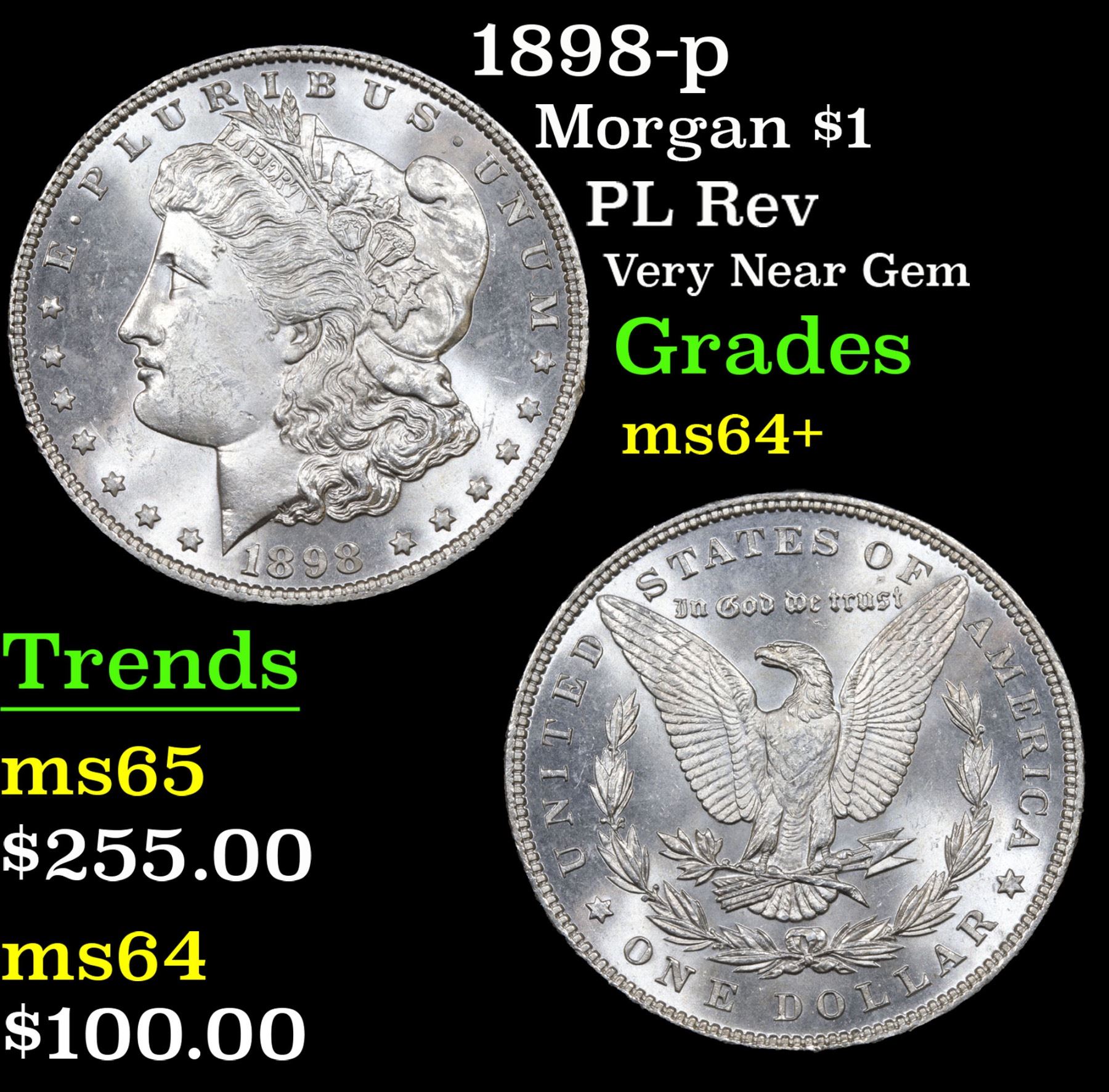 1898-p PL Rev Very Near Gem Morgan Dollar $1 Grades Choice+ Unc. A Corey's Pick