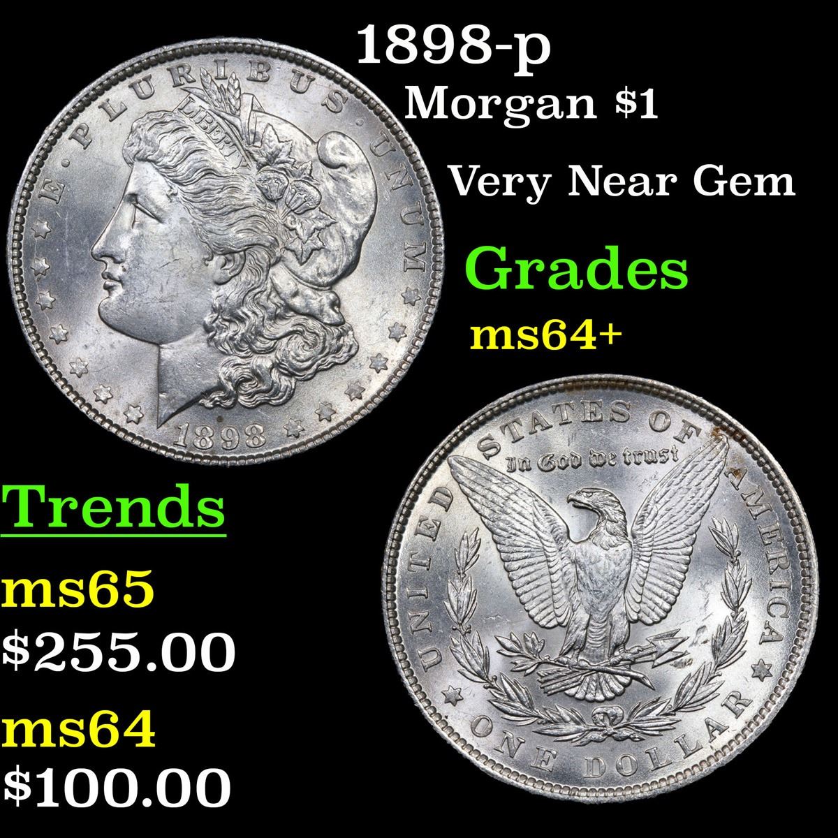 1898-p . Very Near Gem Morgan Dollar $1 Grades Choice+ Unc.