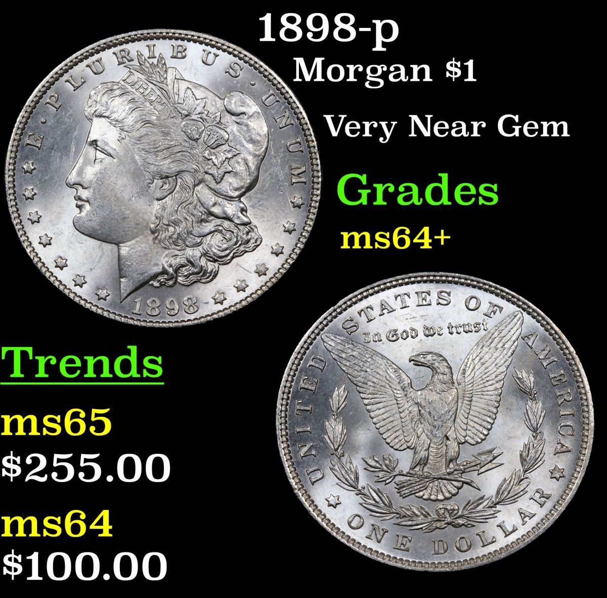 1898-p Morgan Dollar $1 Grades Choice+ Unc.