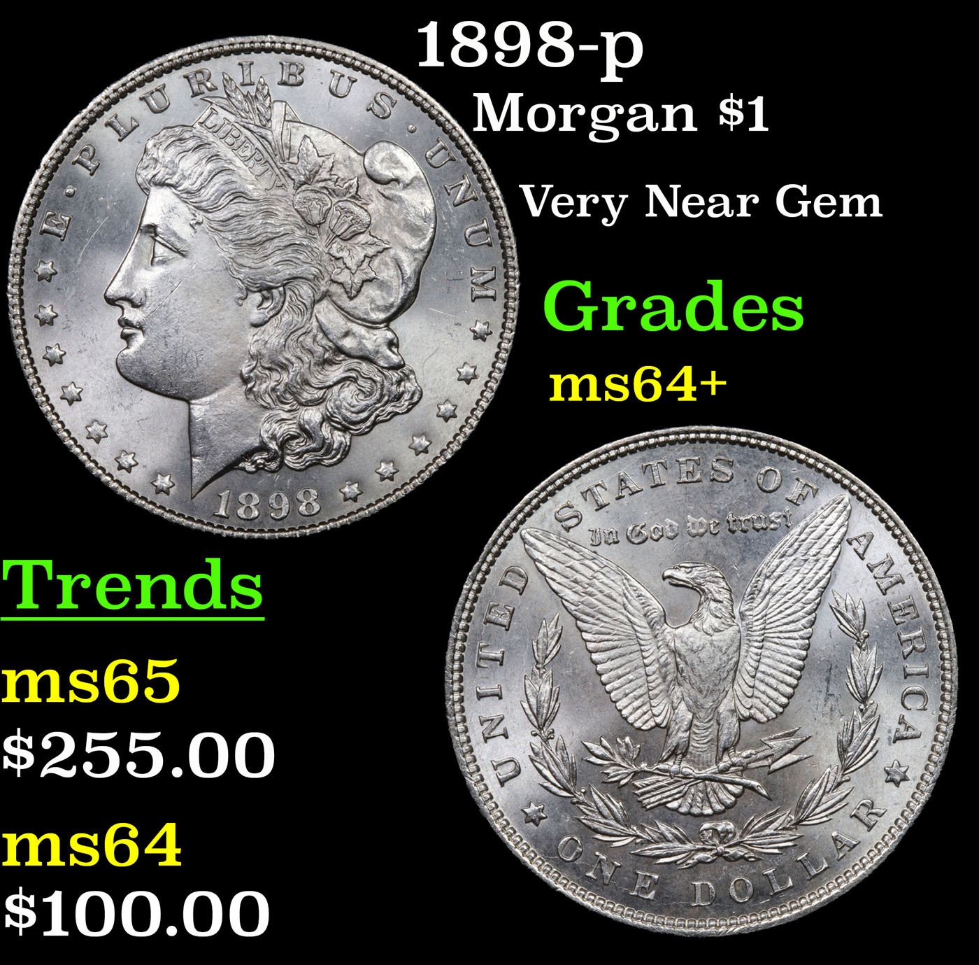 1898-p Morgan Dollar $1 Grades Choice+ Unc.