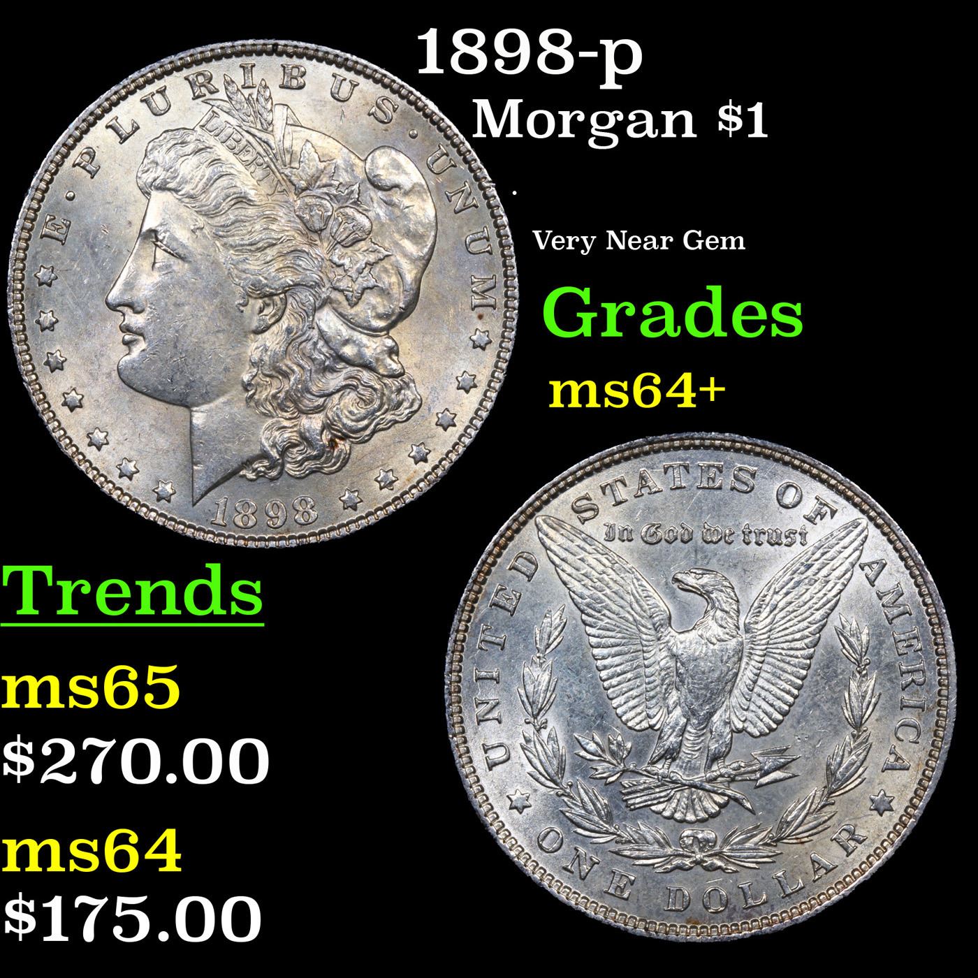 1898-p Morgan Dollar $1 Grades Choice+ Unc.