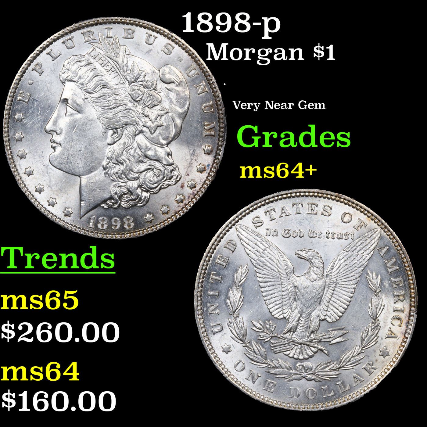 1898-p Morgan Dollar $1 Grades Choice+ Unc.