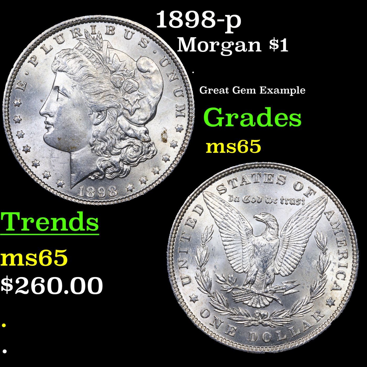 1898-p Morgan Dollar $1 Grades GEM Unc.