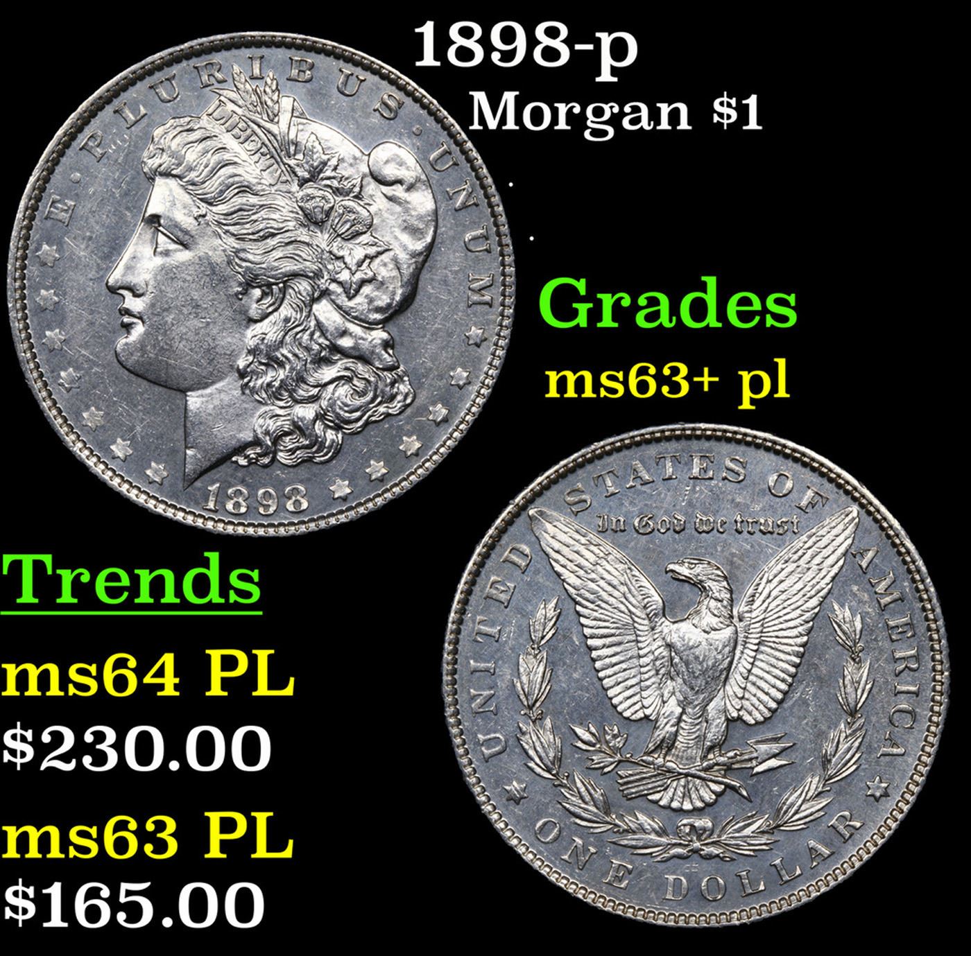 1898-p Morgan Dollar $1 Grades Select Unc+ PL.