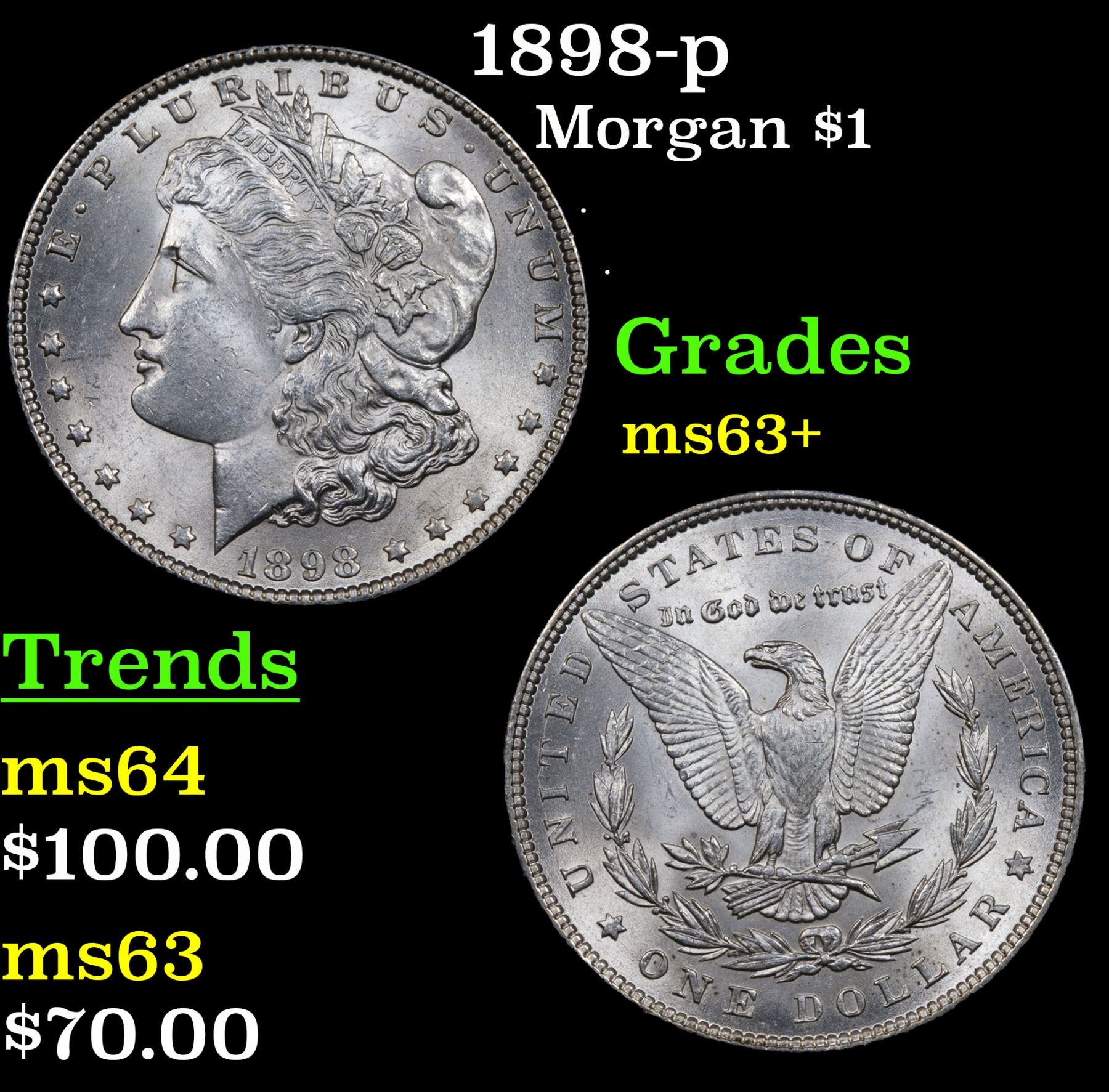 1898-p Morgan Dollar $1 Grades Select+ Unc.