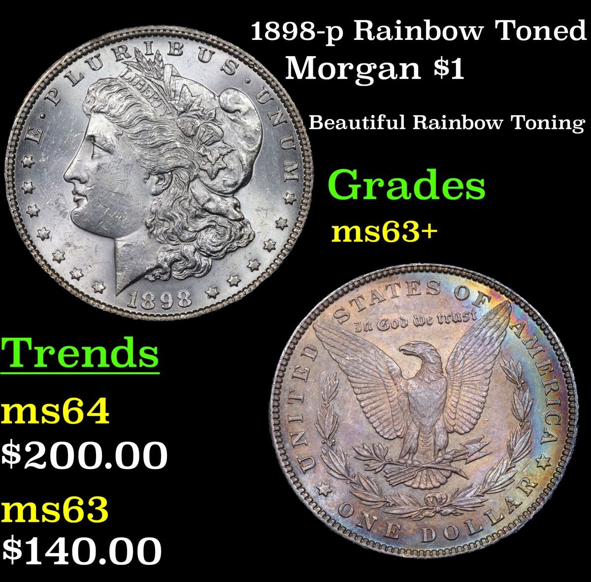 1898-p Rainbow Toned Morgan Dollar $1 Grades Select+ Unc.