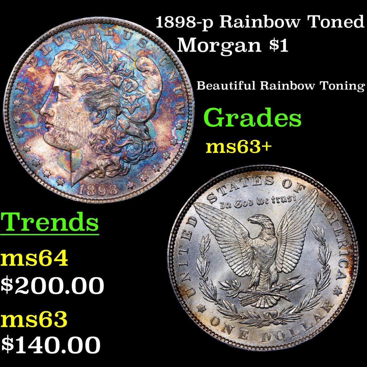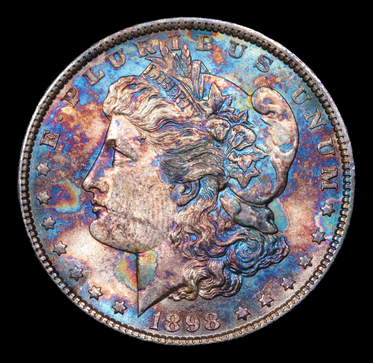 1898-p Rainbow Toned Morgan Dollar $1 Grades Select+ Unc.
