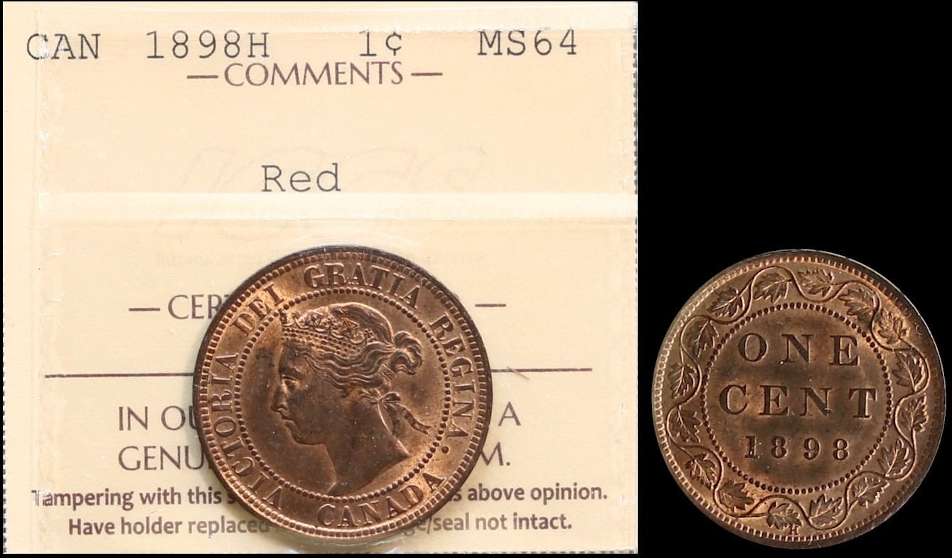 1898H 1¢ ICCS Choice Mint State-64RED.