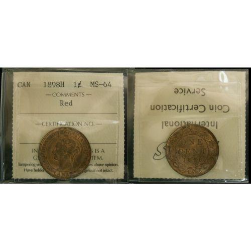 1898H 1¢ ICCS MS64 Red, a sharp key date Victorian cent