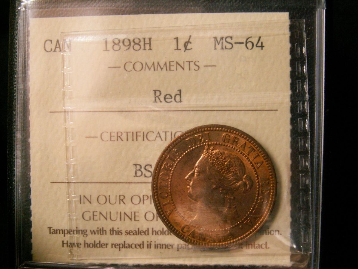 1898H 1¢ ICCS MS64RD. 75% red with lustre.