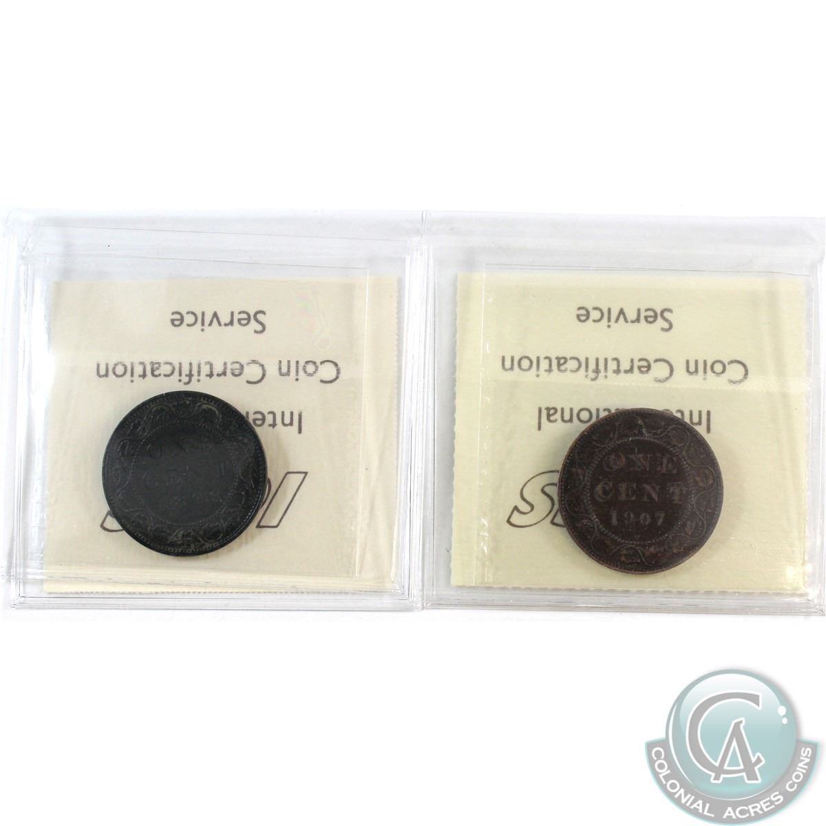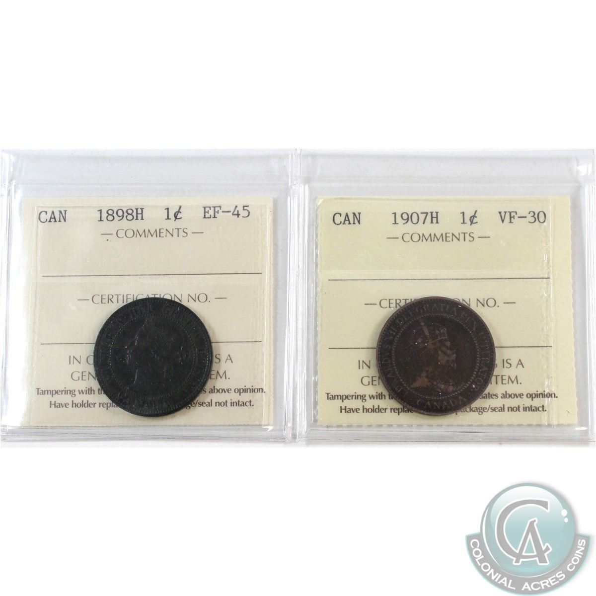 1898H Canada 1-cent EF-45 & 1907H Canada 1-cent VF-30. Both coins have been certified by ICCS. 2pcs.