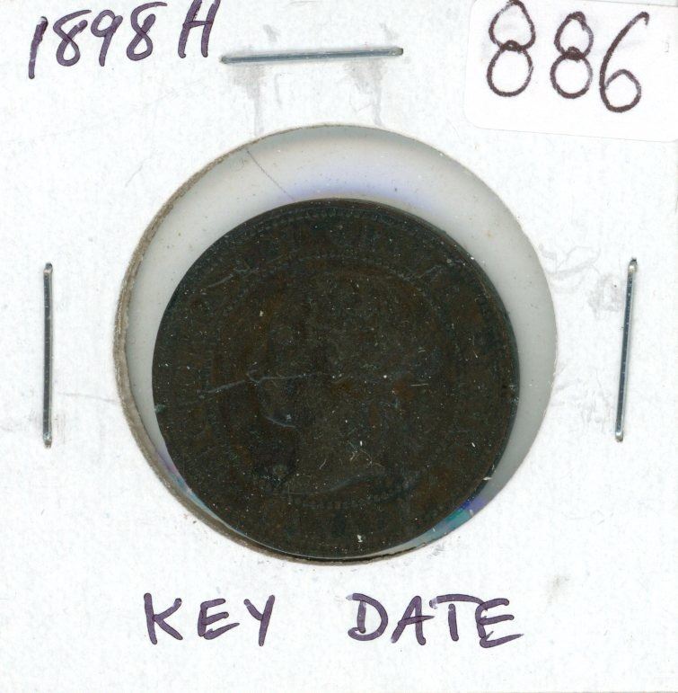 1898H Canadian Victorian Large Cent. Heaton Mint. Key Date. F-12.