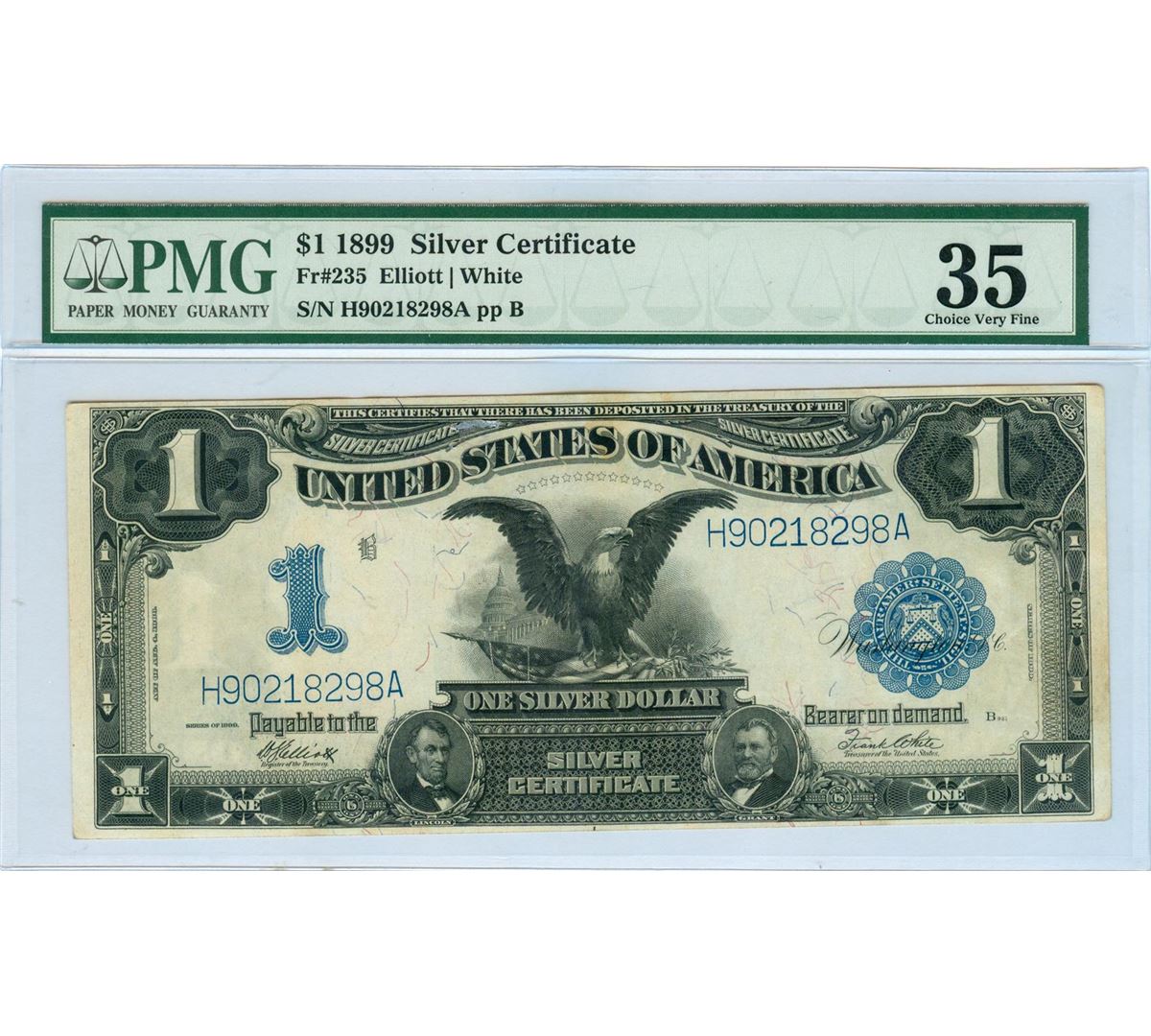 One 1899 $1 Black Eagle Silver Certificate FR-235 PMG Graded Choice Very Fine 35.