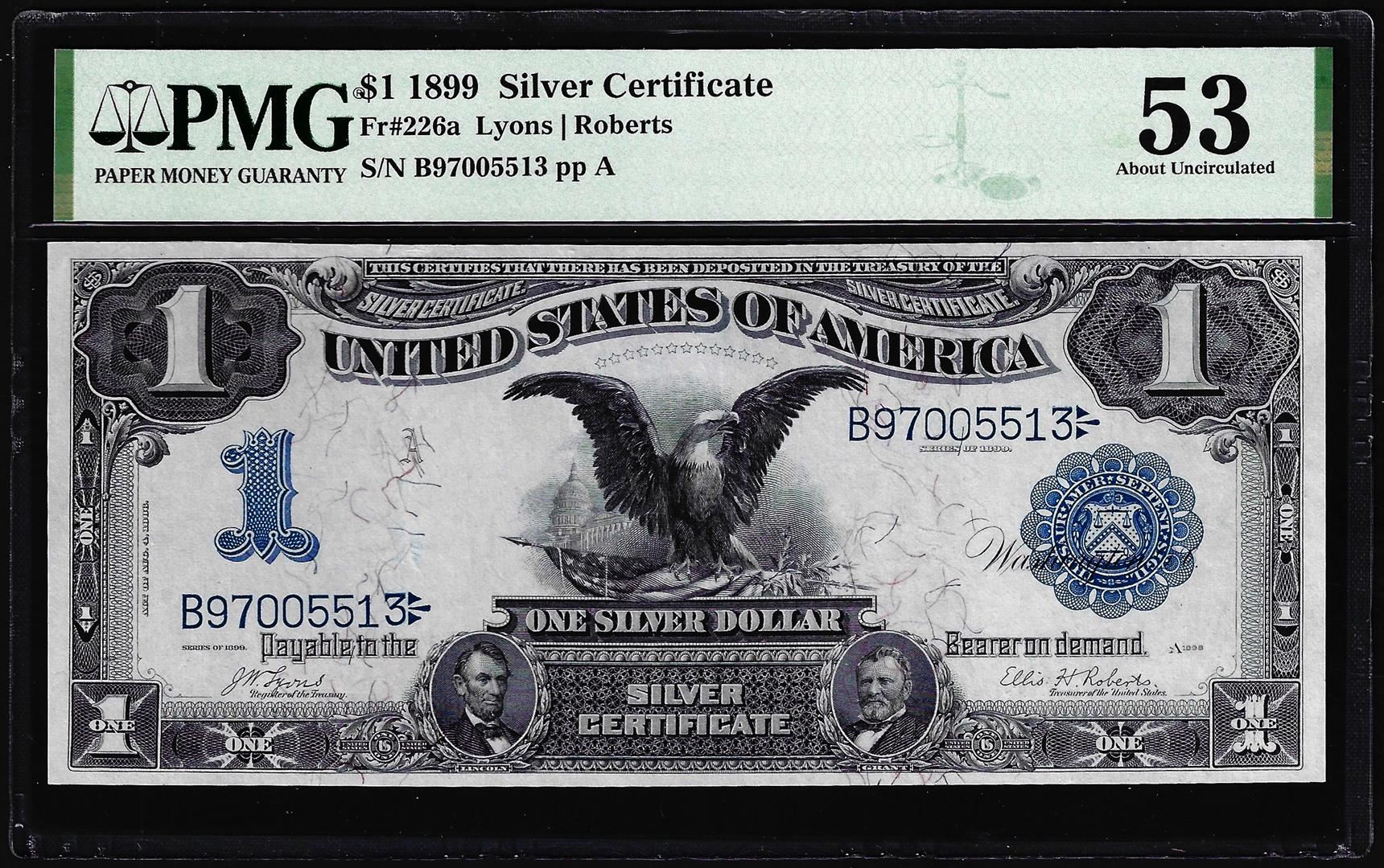 1899 $1 Black Eagle Silver Certificate Note Fr.226a PMG About Uncirculated 53