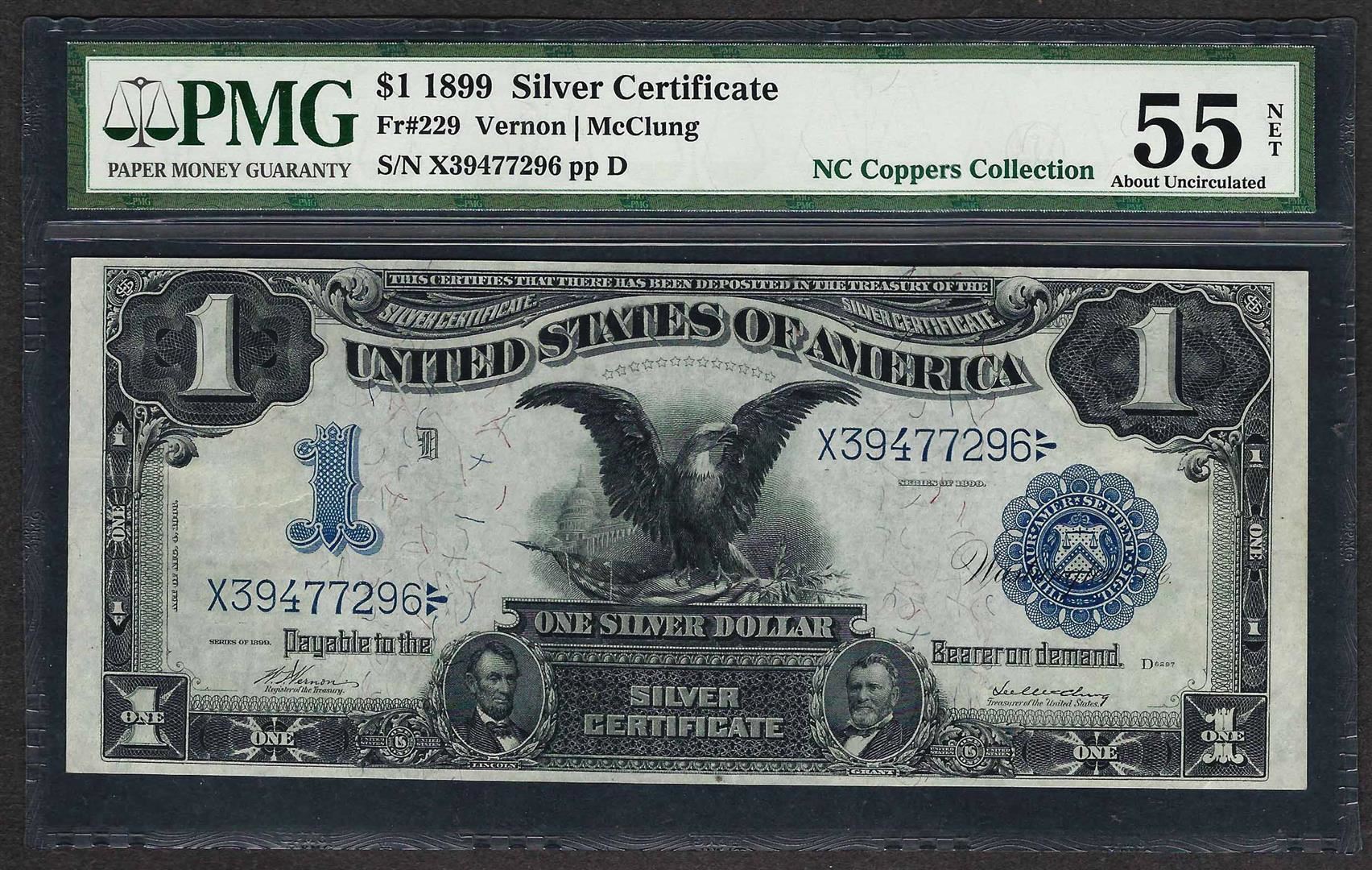 1899 $1 Black Eagle Silver Certificate Note Fr.229 PMG About Uncirculated 55 Net
