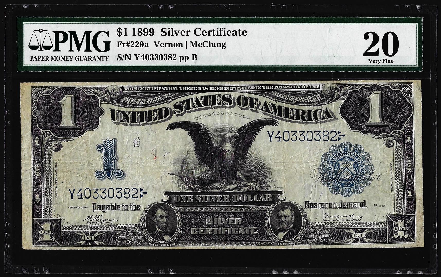 One 1899 $1 Black Eagle Silver Certificate Note Fr.229a PMG Very Fine 20. PMG Certified.