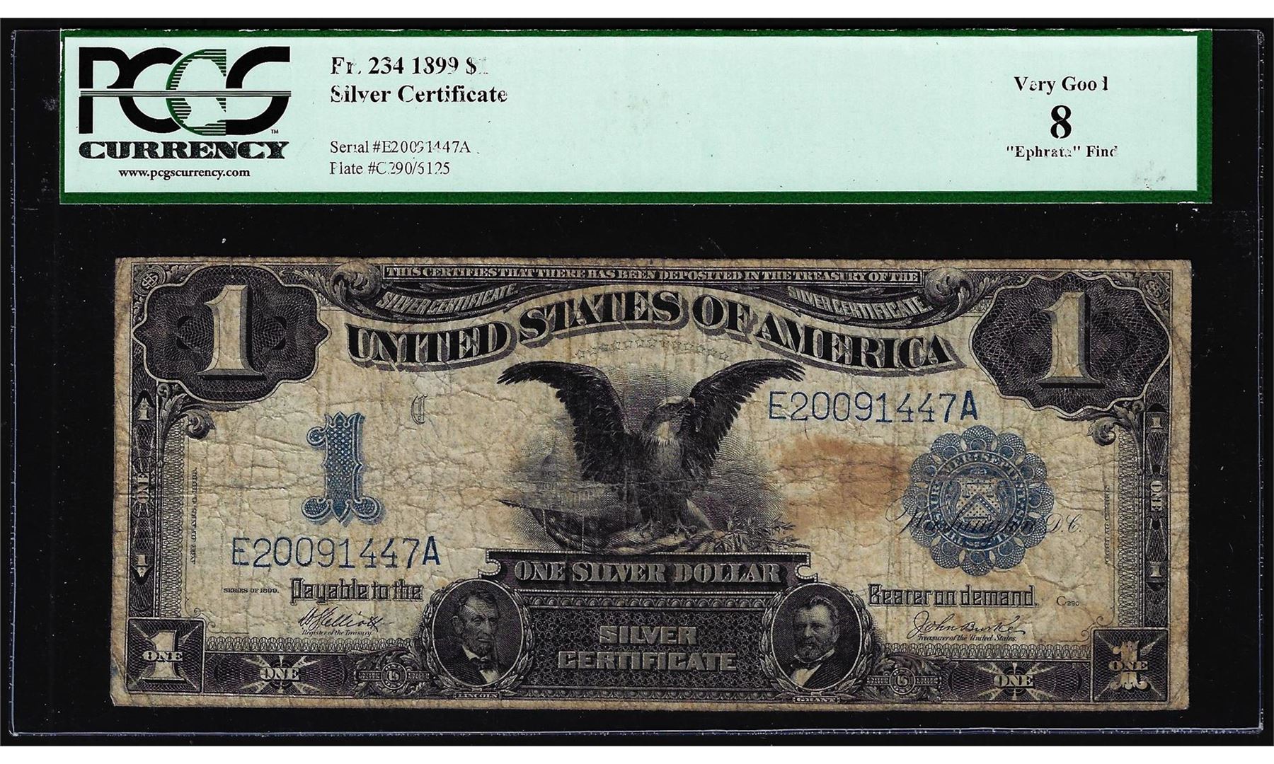 One 1899 $1 Black Eagle Silver Certificate Note Fr.234 PCGS Very Good 8. PCGS Graded.