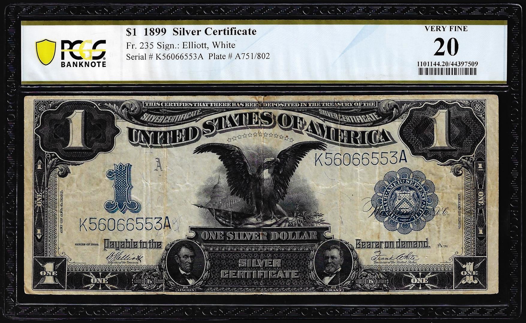 1899 $1 Black Eagle Silver Certificate Note Fr.235 PCGS Very Fine 20
