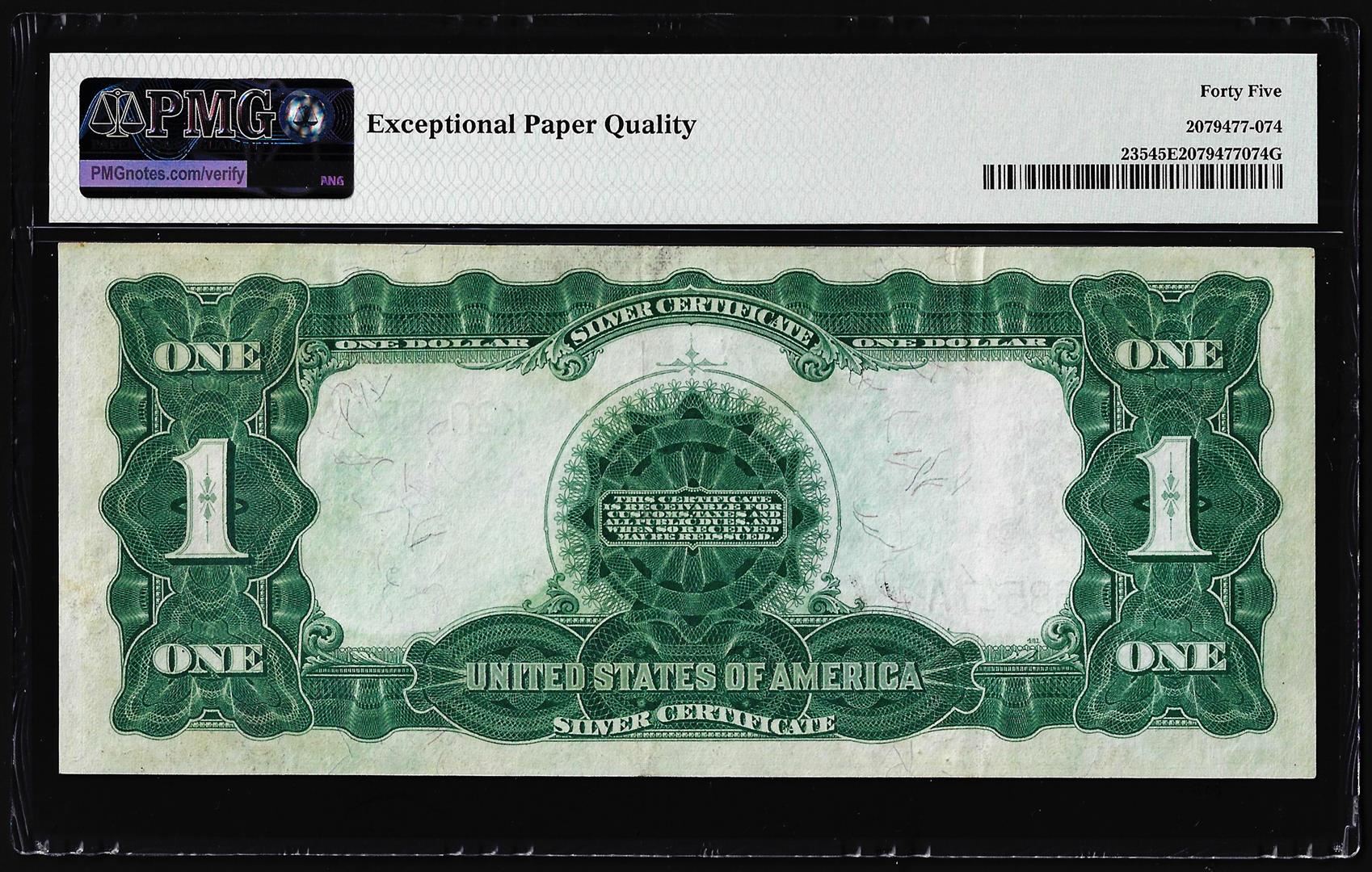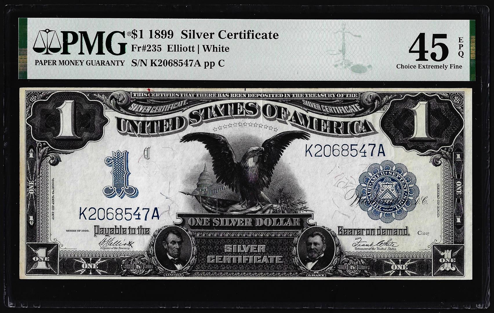 One 1899 $1 Black Eagle Silver Certificate Note Fr.235 PMG Choice Extremely Fine 45EPQ. PMG Certified.