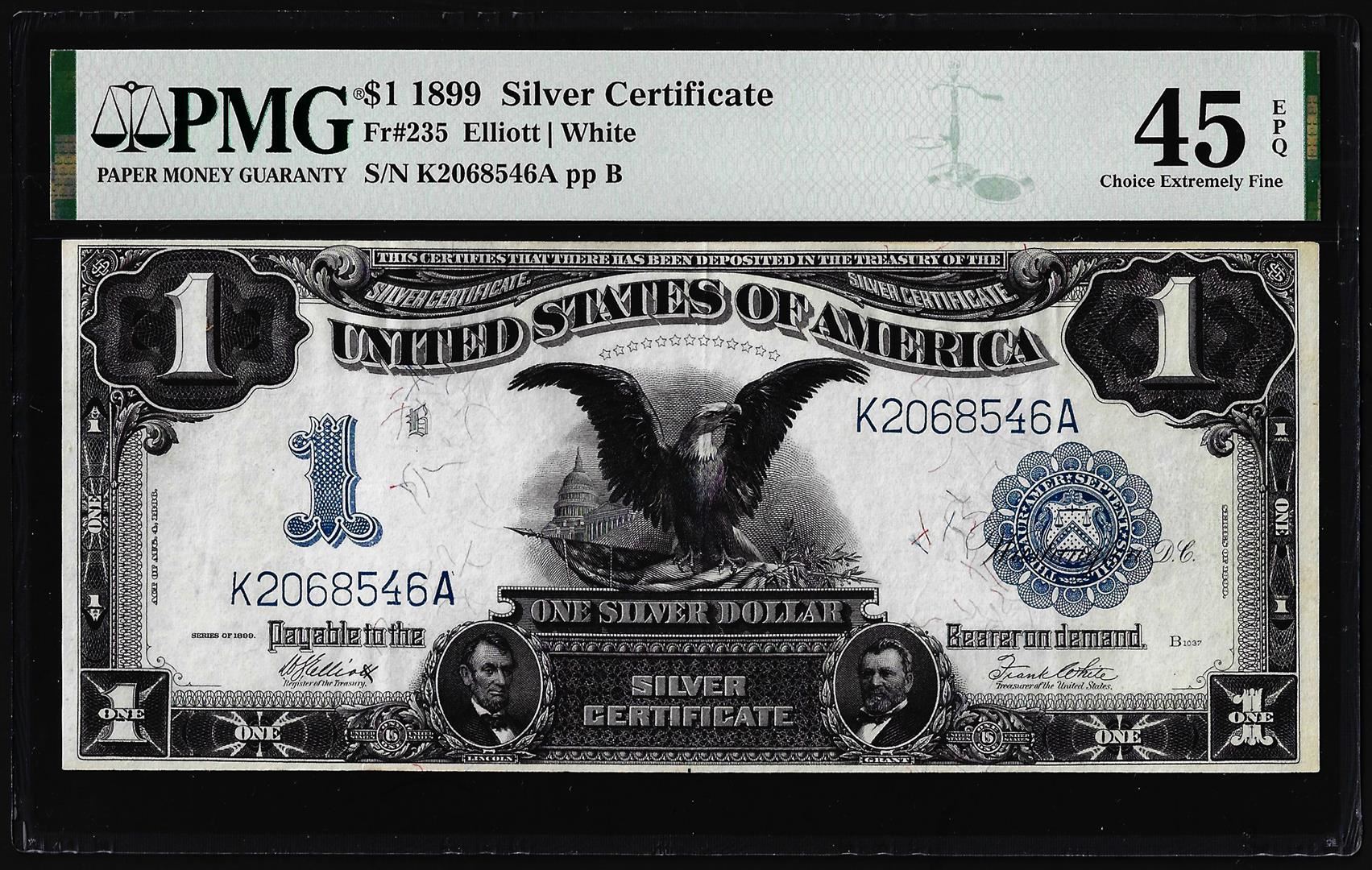 One 1899 $1 Black Eagle Silver Certificate Note Fr.235 PMG Choice Extremely Fine 45EPQ. PMG Certified.