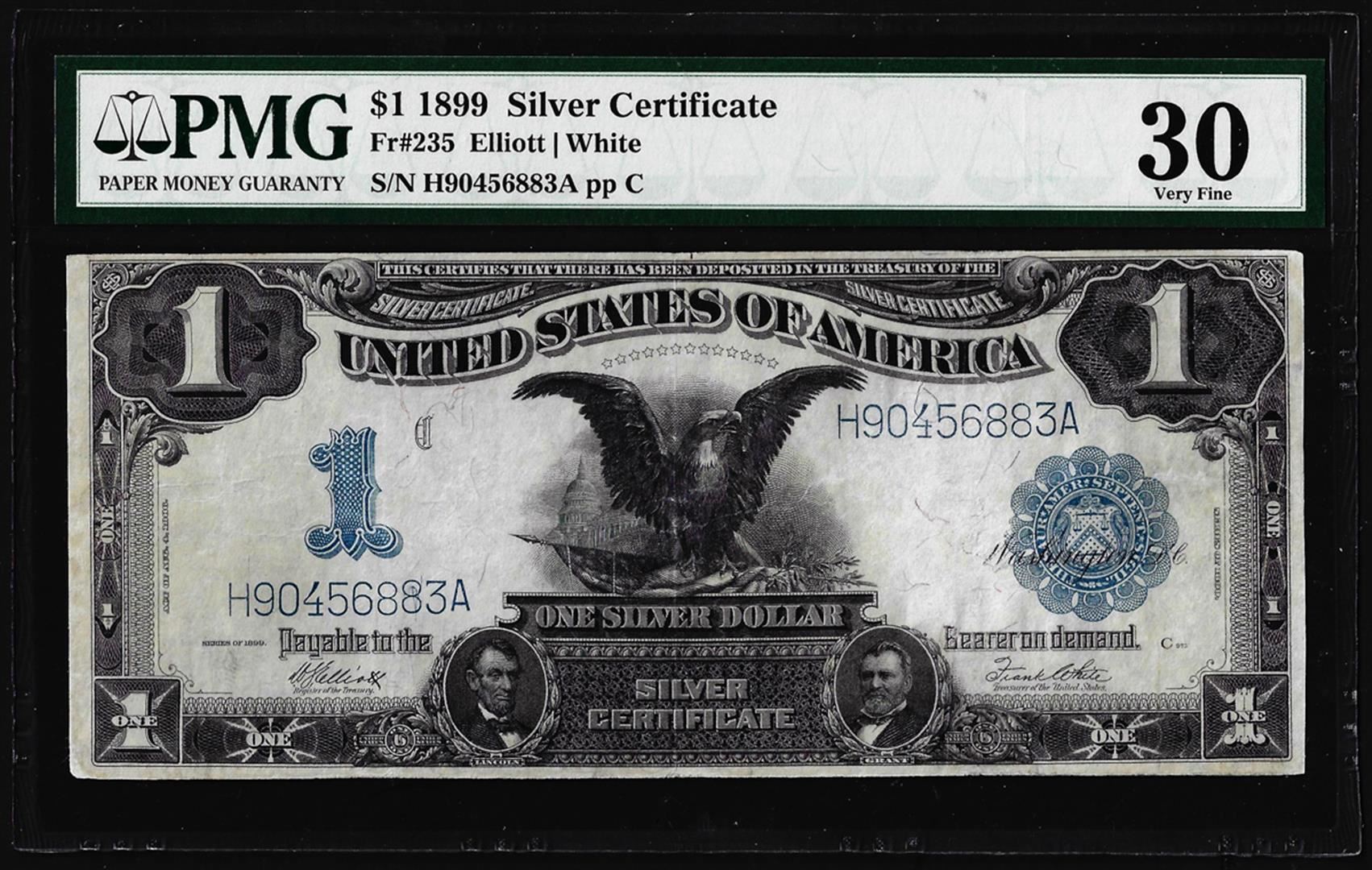 One 1899 $1 Black Eagle Silver Certificate Note Fr.235 PMG Very Fine 30. PMG Certified.