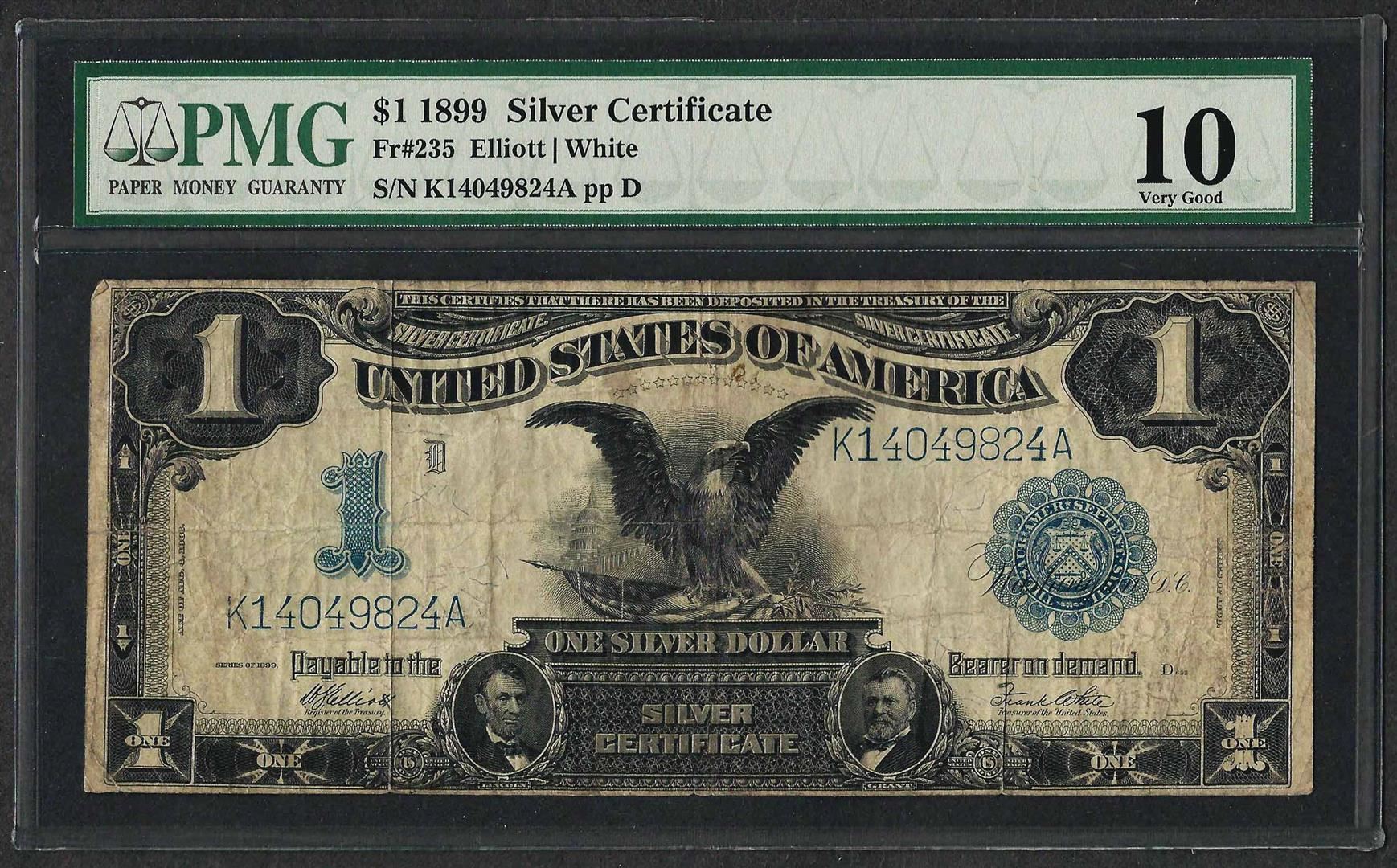 One 1899 $1 Black Eagle Silver Certificate Note Fr.235 PMG Very Good 10. PMG Certified.