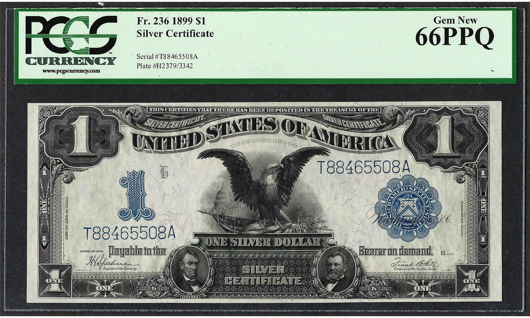 One 1899 $1 Black Eagle Silver Certificate Note Fr.236 PCGS Gem New 66PPQ. PCGS Graded.