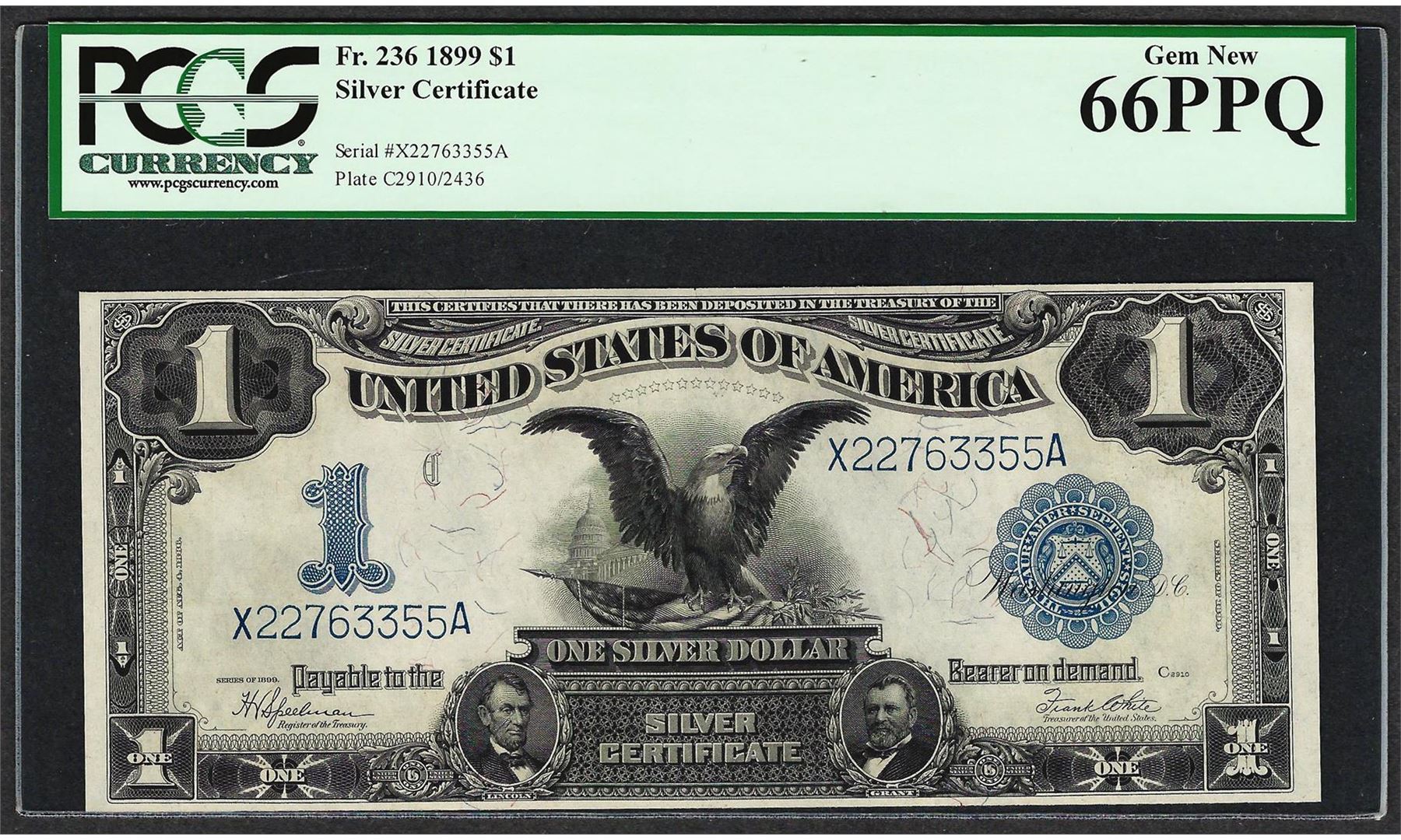 One 1899 $1 Black Eagle Silver Certificate Note Fr.236 PCGS Superb Gem New 66PPQ. PCGS Graded.