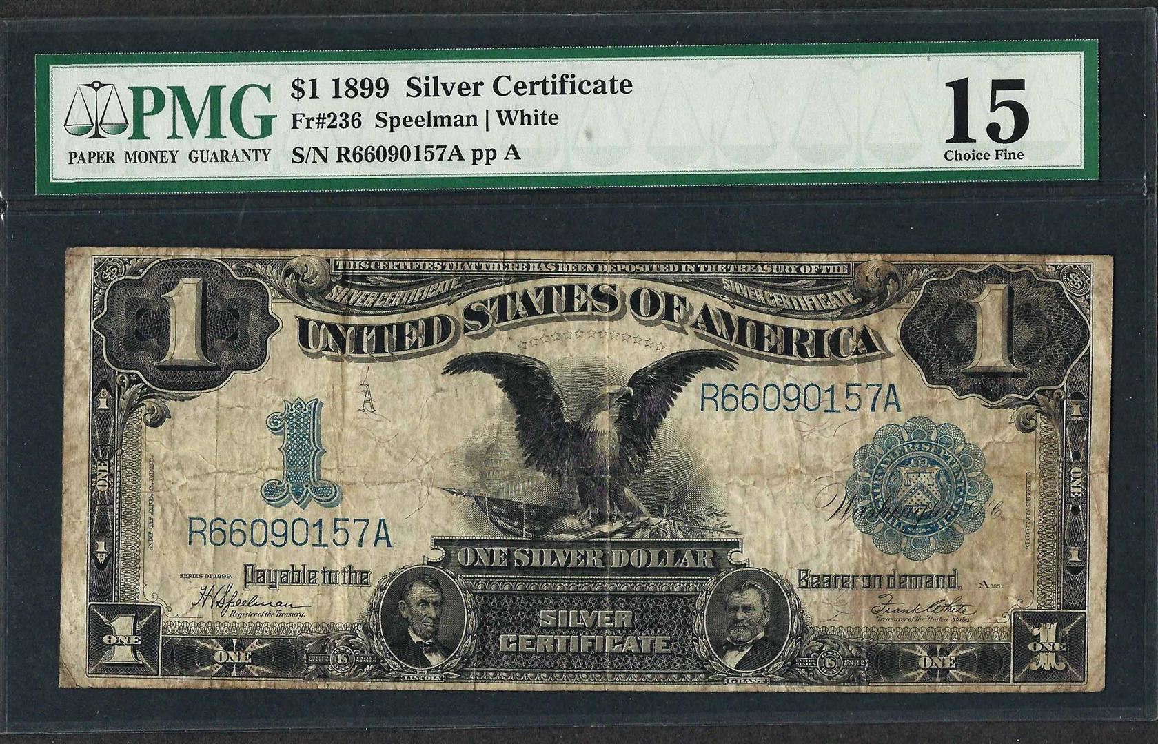 One 1899 $1 Black Eagle Silver Certificate Note Fr.236 PMG Choice Fine 15. PMG Certified.